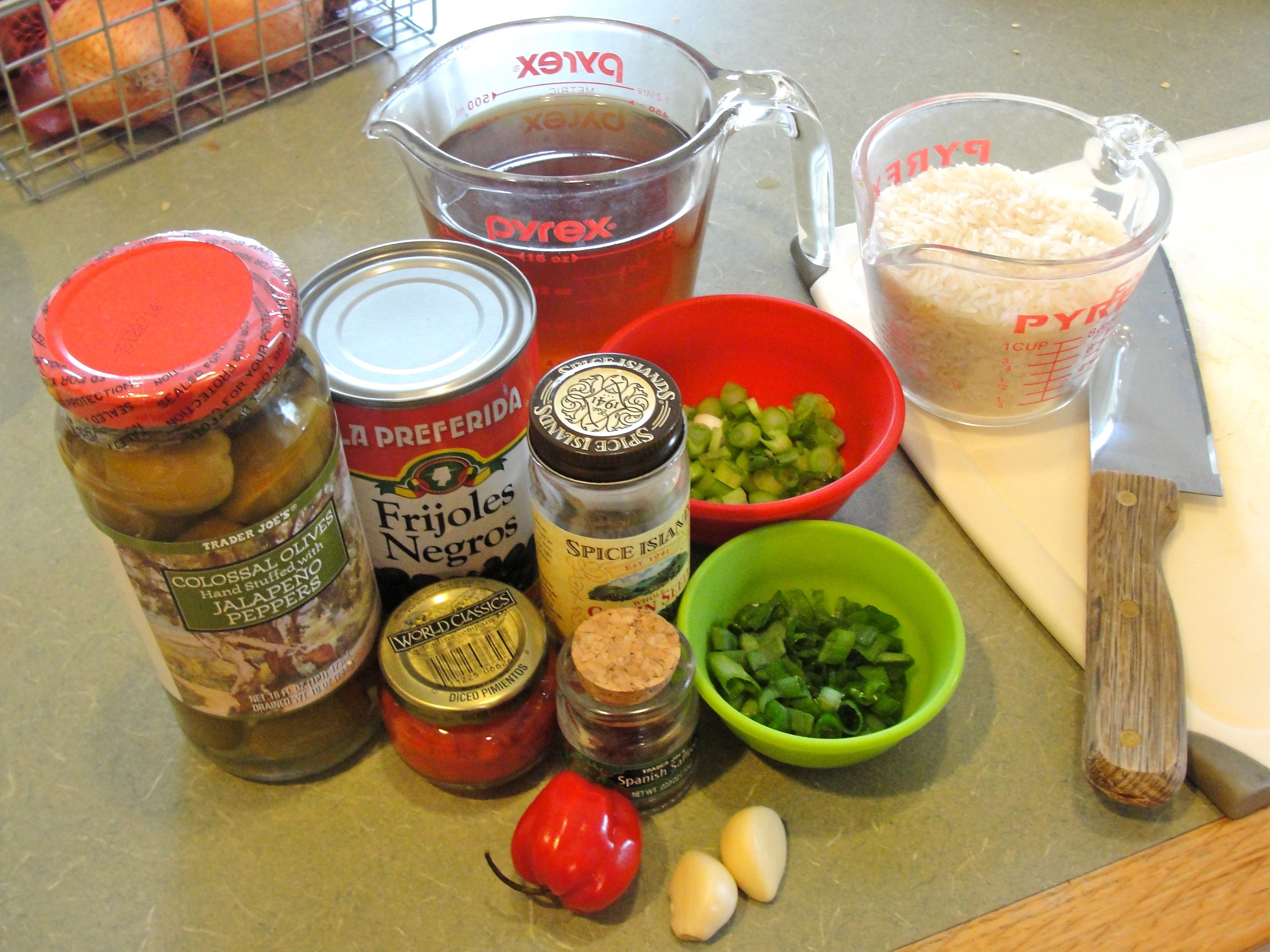 As an alternative filling, I created a Scotch Bonnet Beans & Rice, since I wanted a spicy kick, as chiles rellenos are typically quite mild; I acheived a moderate level of heat by using just a single scotch bonnet pepper, with seeds and veins removed.