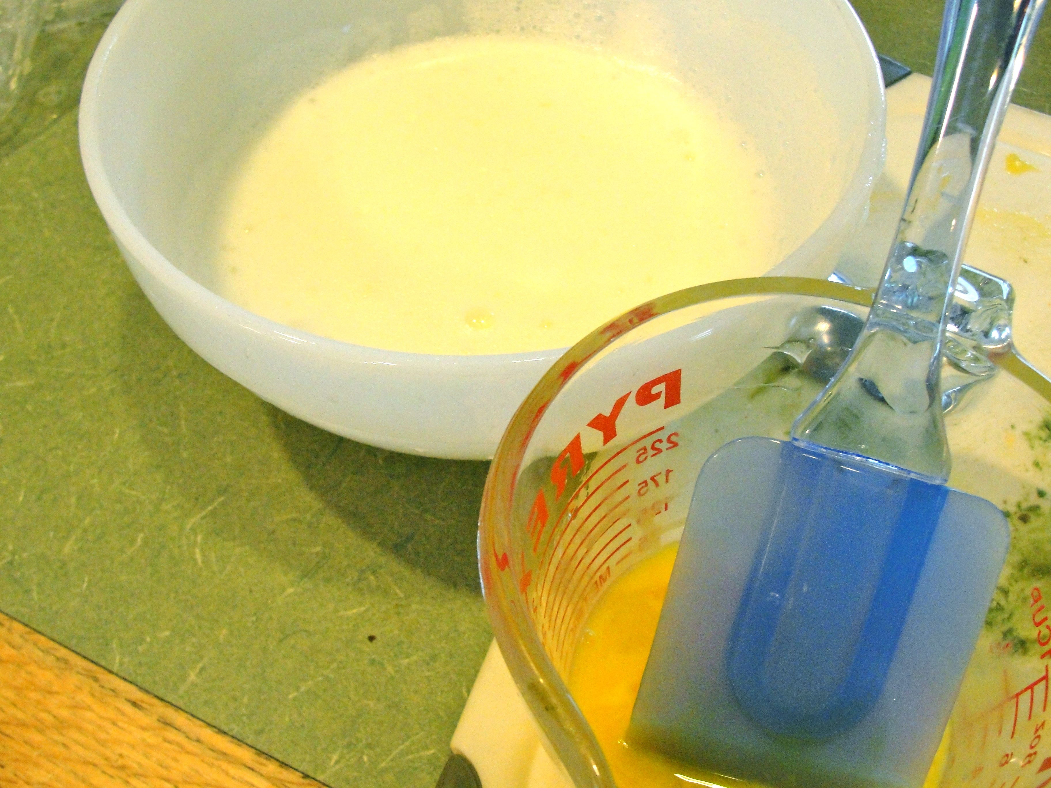Whipped Egg Whites and Separated Yolks to be folded together for Batter.