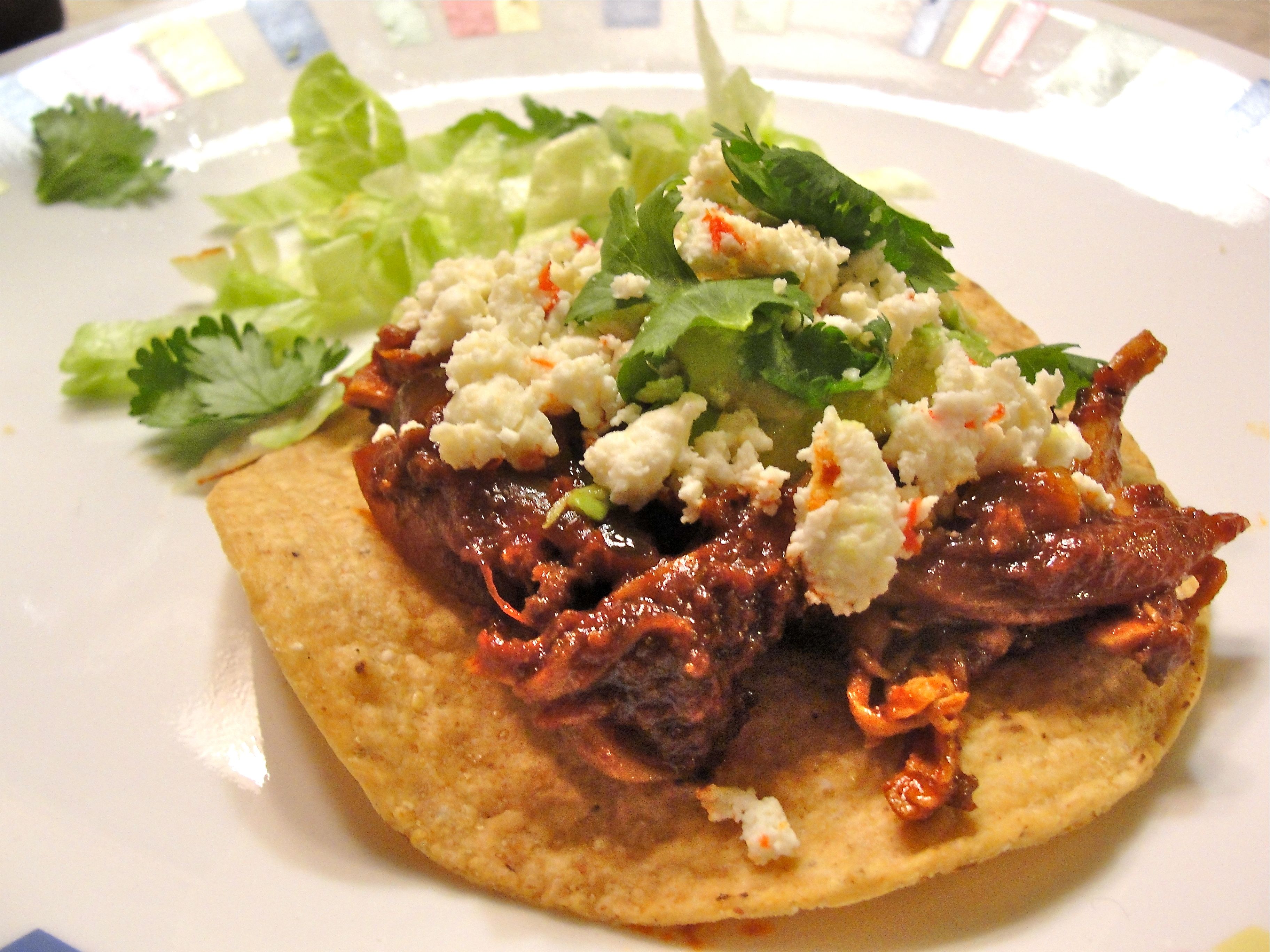 I took the Chicken Tinga to a friend’s house where we served atop both crisp tostadas and warmed corn tortillas along with shredded iceberg lettuce, ripe avocado, cilanto leaves, and crumbled Scotch Bonnet Queso Fresco.