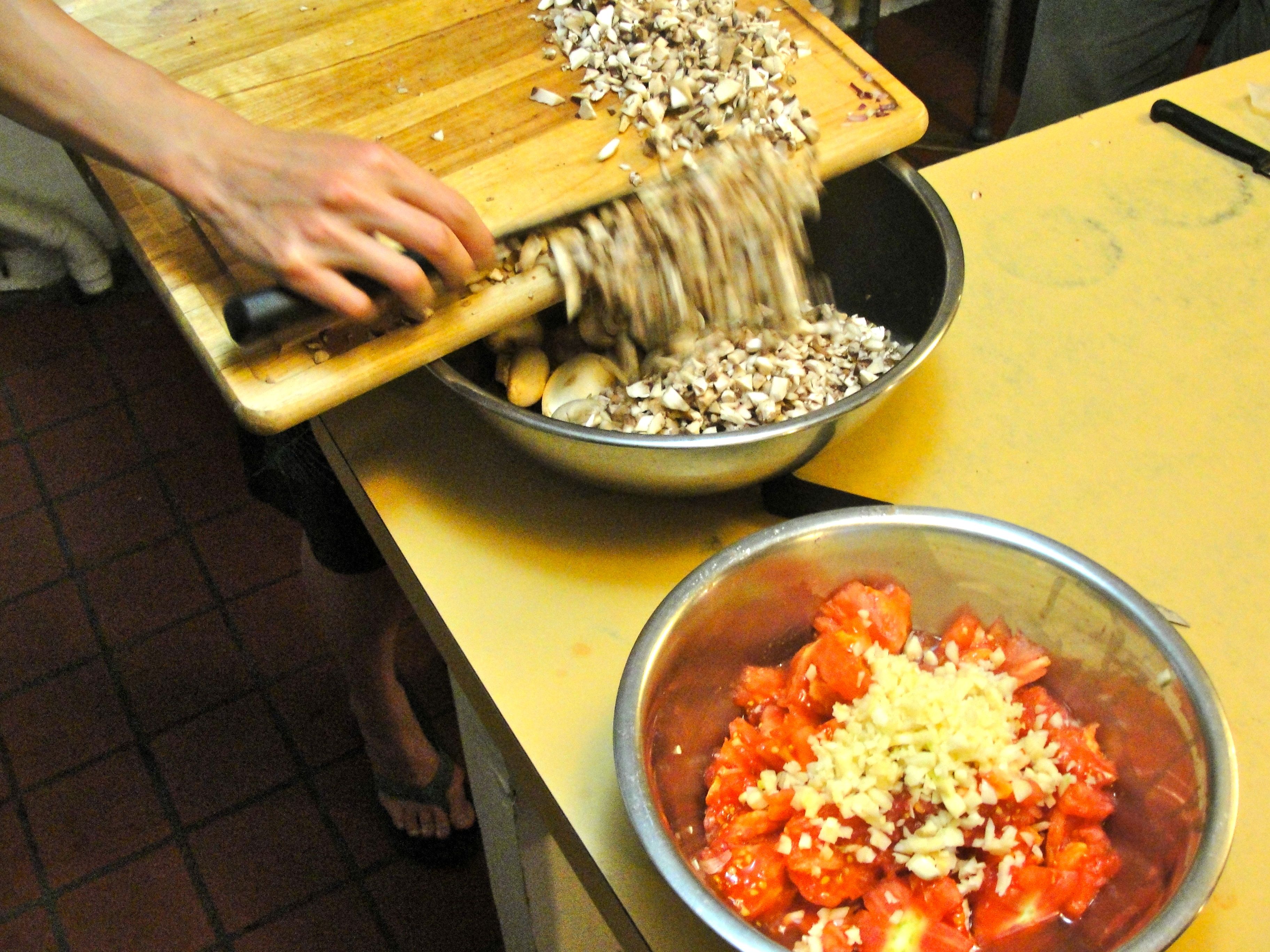 Chopped mushroom for the filling; also, tomatoes and minced garlic.