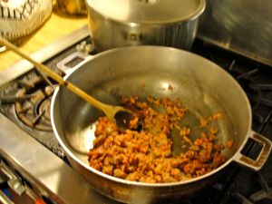 This was the first meal we prepared for the co-op; having no idea how long it would take to prepare, we started at about 2pm for a 7pm dinnertime. (As it turns out, that was none too soon for this first effort.)
