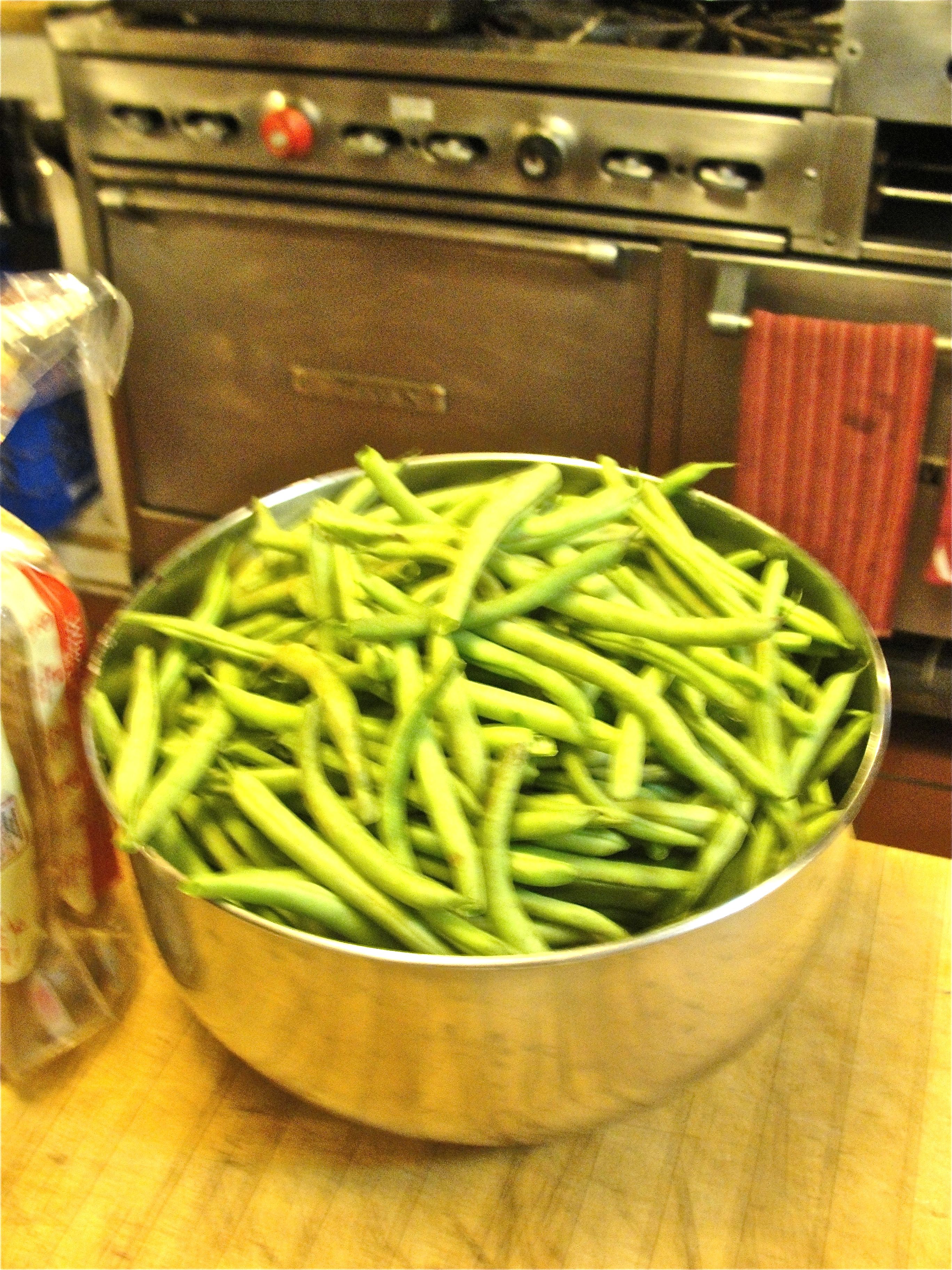 For a side, we washed and trimmed 3-4 pounds of fresh green beans.