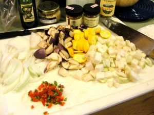 Alas, this post isn’t a recipe, per se… I’ve lost track of many quantities and there were a lot of adjustments to taste. I trust most of you don’t need measurements to prepare such a meal for 18 people, though. :)