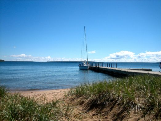 The co-op has a large dining room with a great table, here set for 17 residents and guests! Two kinds of sliced melon were also served with the dinner.