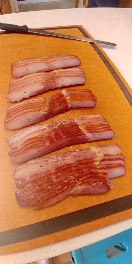 That changed when a bacon-making friend inspired me to smoke bacon and I had a new idea: Why not make “Canadian bacon” or back bacon in strips like “American” bacon or streaky bacon?
