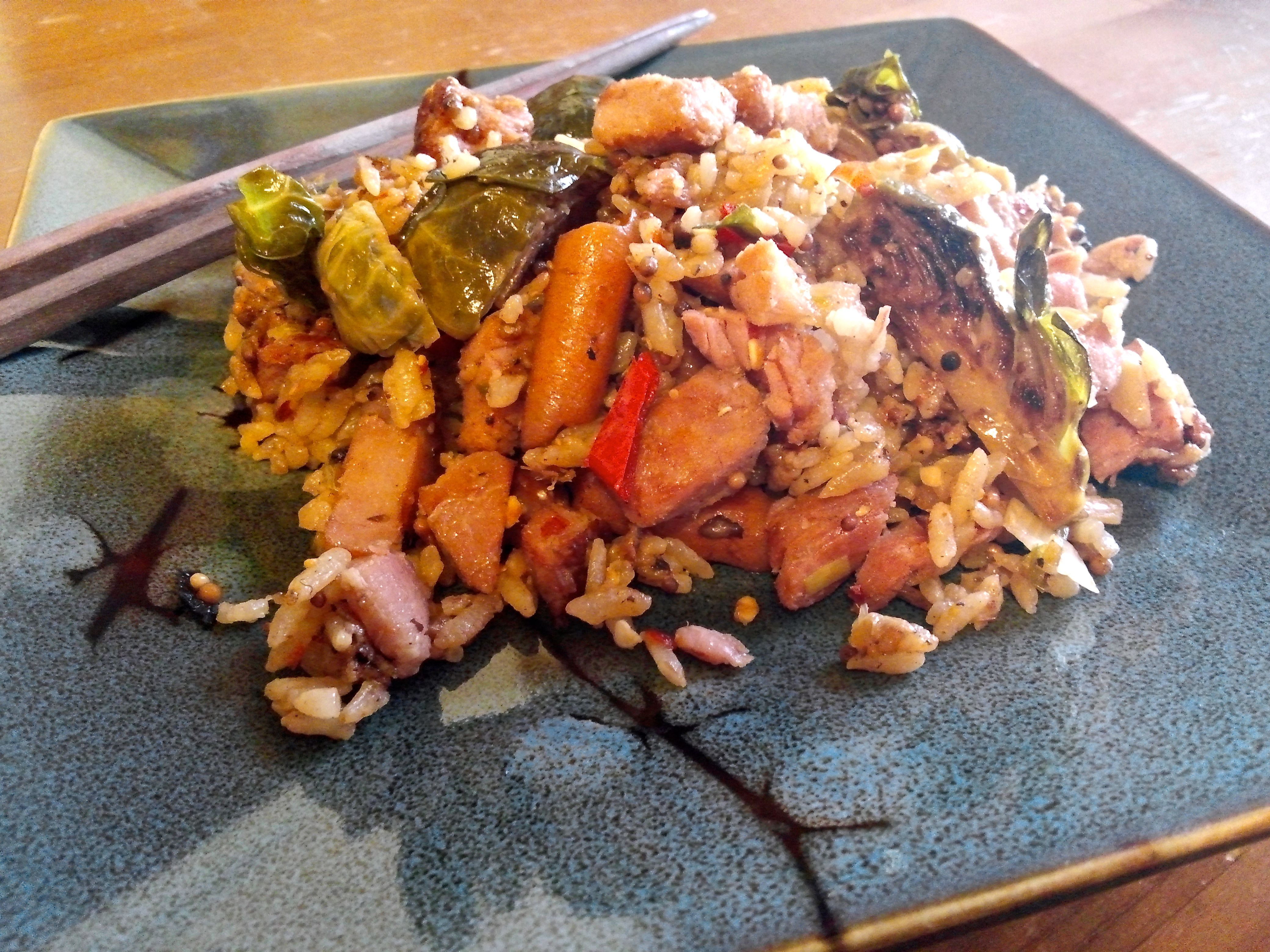 Here’s the video with the curing method on which mine is based; I use ~1/3 cup of each ingredient (for one square flat of pork loin) where they use 1/4 cup (for one seemingly smaller square of pork belly):