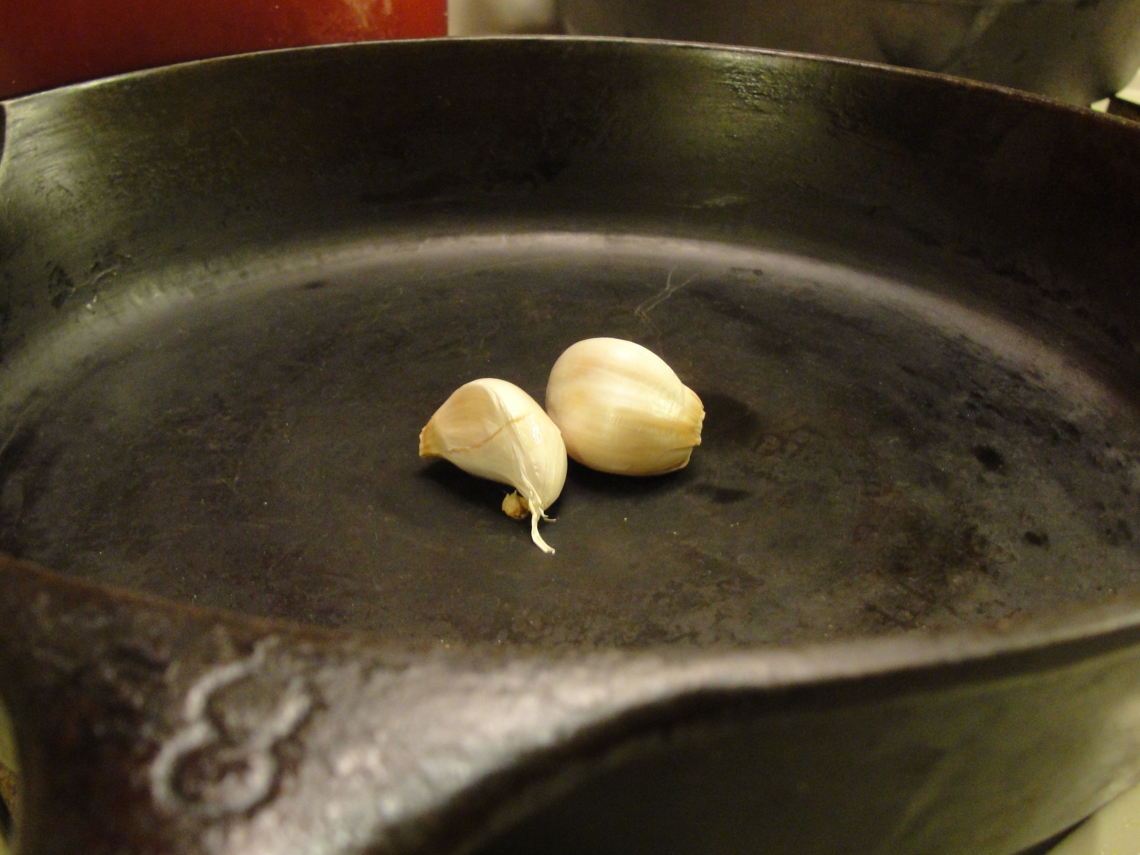 In the same pan, roast the garlic cloves until tender and the ginger a bit. Since my garlic cloves were already peeled, I wrapped them in foil as well as the minced ginger, so that it could be easily removed when tender.