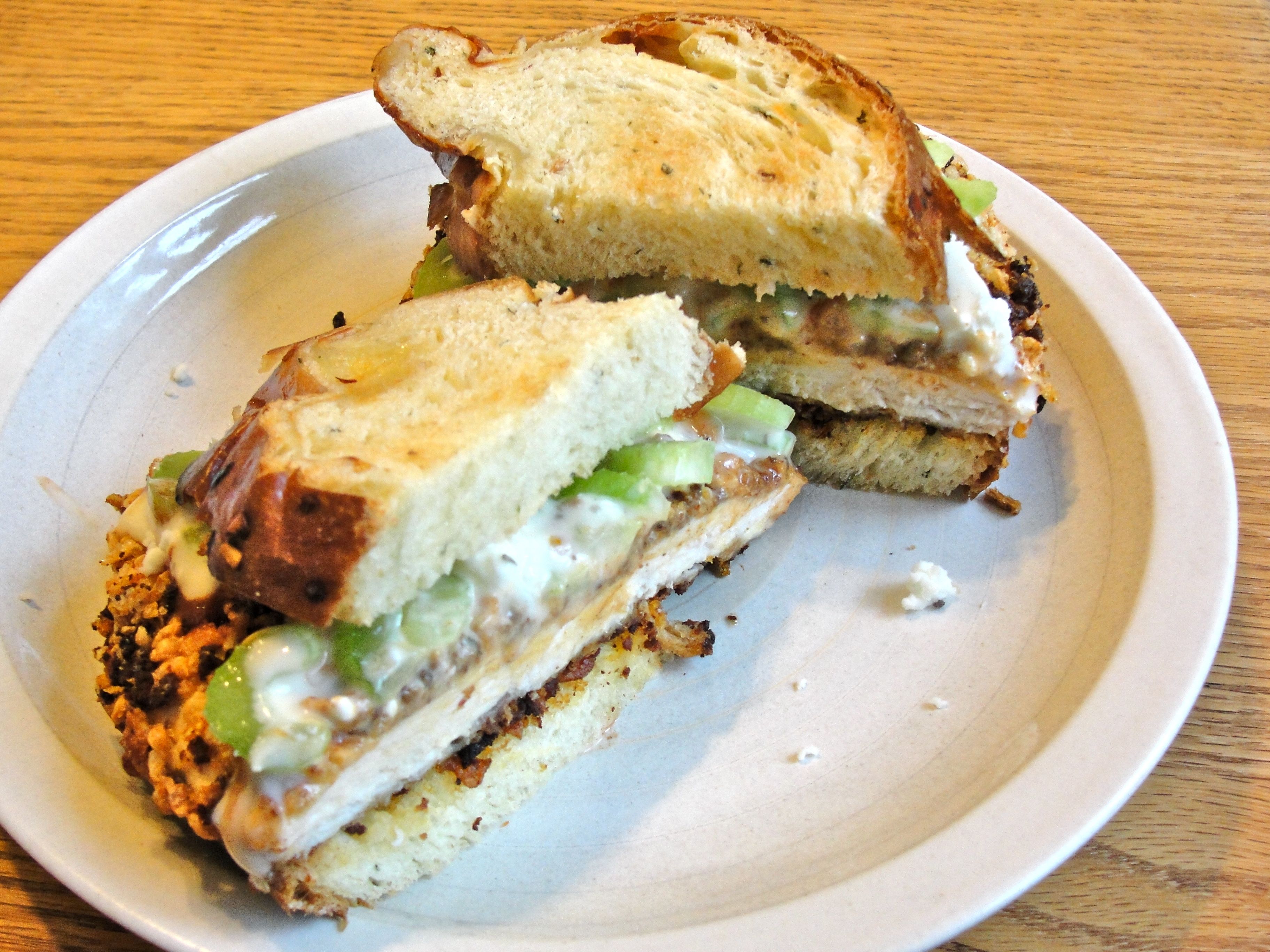 We served this Smoked Chicken Chili as one of three chilis to a gang of guest friends, at home, with choice of many toppings and hot sauces, including homemade cornbread croutons. These substantial croutons work nice in that they soak up a bit of the liquid, but still stay crunchy.