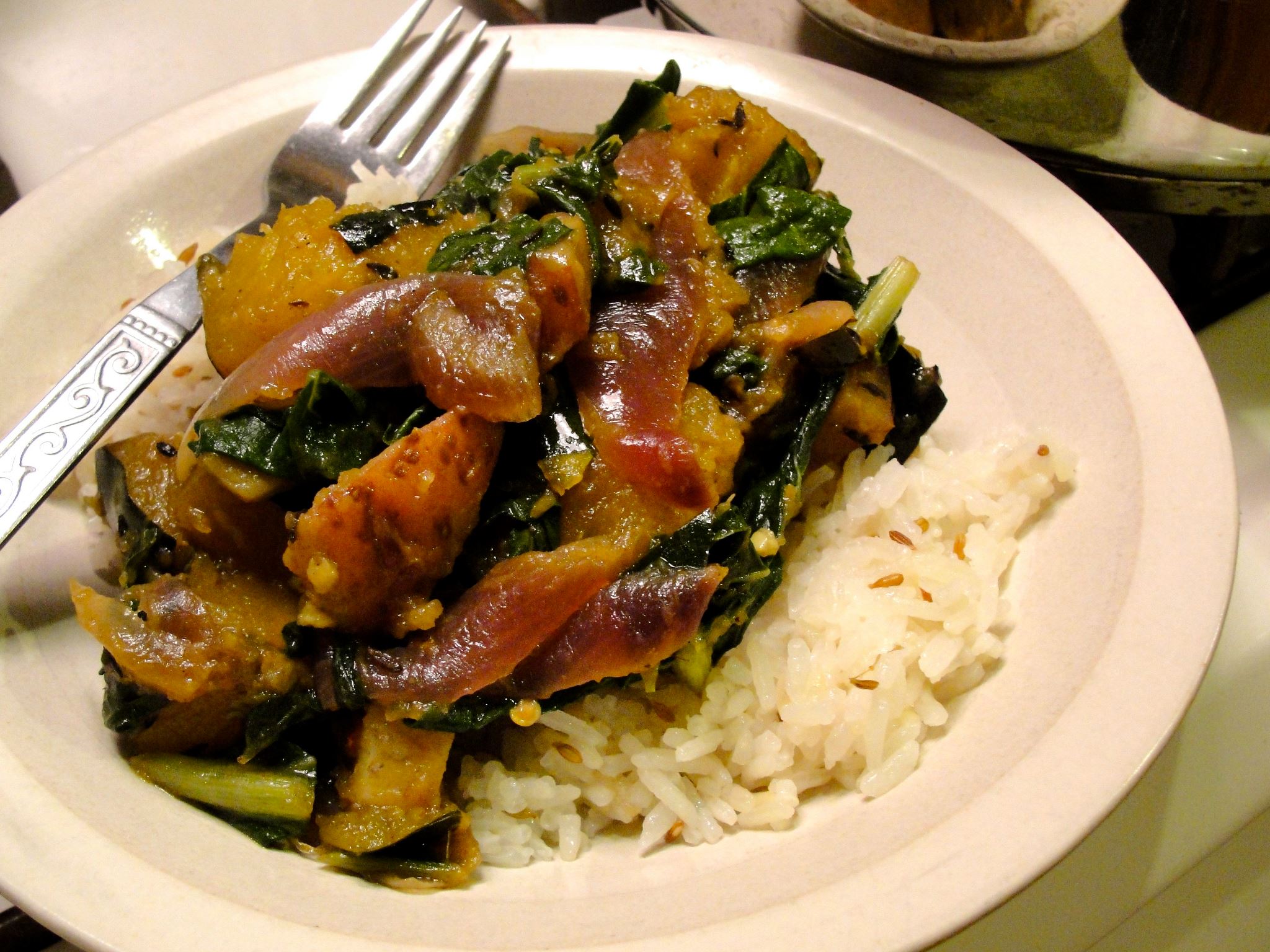 Stir and use a spoon to squash any whole squash cubes. Taste for spiciness (it will likely be quite spicy with 8-10 thai chilis) and salt, and adjust as you like.